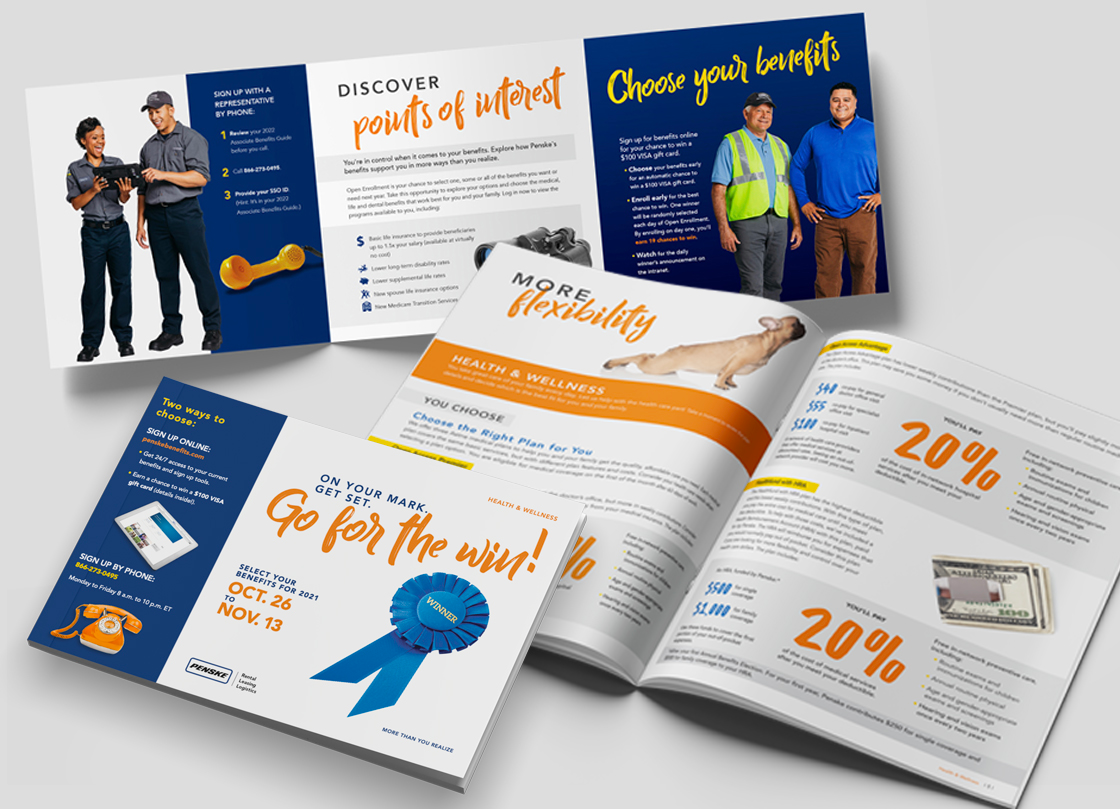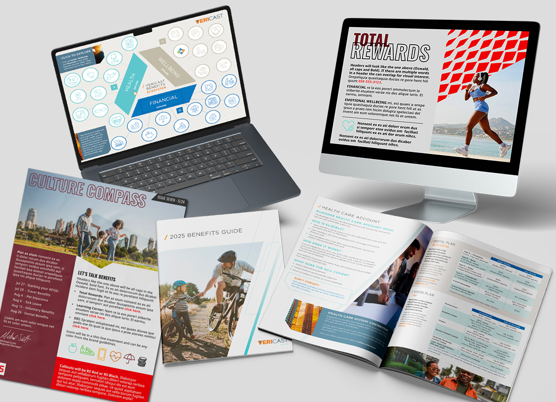 Your brand standards are just the beginning. The direction we go from there depends on the story you want to tell. What do you want employees to feel about themselves, their benefits, and the company when they see your communications?